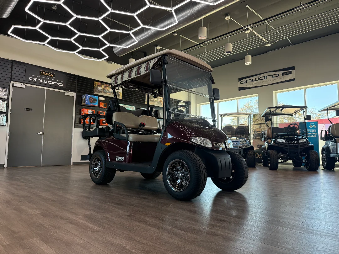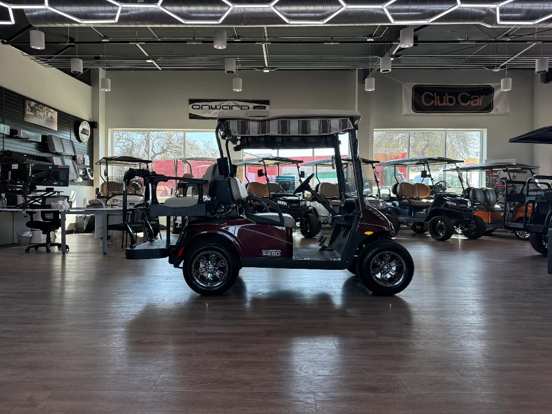 Enviro Carts is honored to present this 2012 E-Z-GO RXV 2+2 Golf Cart for Sale. Powered by a reliable Battery (Lead 8V) electric system, this cart delivers quiet operation and dependable performance for up to four passengers. The rich Maroon exterior paired with a warm Beige interior provides a classic, distinguished look perfect for family cruising on the golf course or around the neighborhood.
