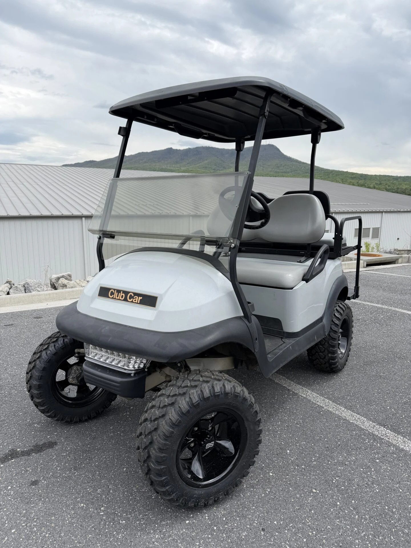 The 2020 Club Car Precedent delivers reliable gas-powered performance with classic Club Car durability, now refurbished and upgraded with a lifted suspension and custom wheels for enhanced style and capability.