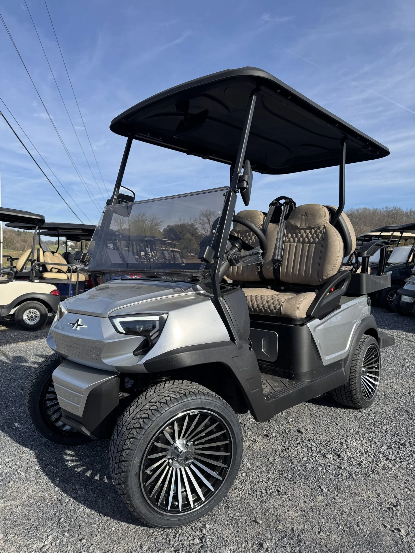 Enviro Carts is honored to present this 2025 Atlas 4 Passenger Electric Golf Cart for Sale. Powered by a state-of-the-art electric motor with Lithium battery technology, this cart delivers quiet operation, zero emissions, and dependable efficiency. The sleek Silver exterior paired with a comfortable Pebble interior provides a modern, sophisticated look perfect for family cruising, golf course navigation, and neighborhood adventures.