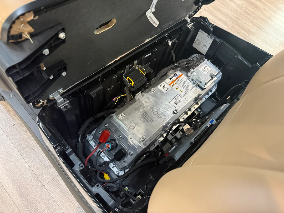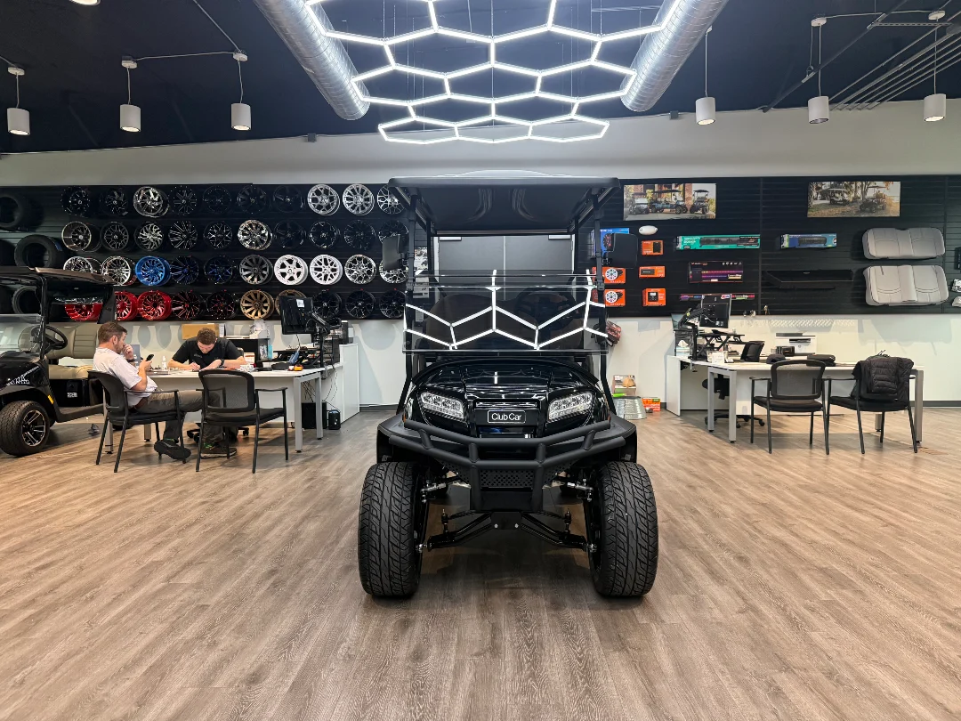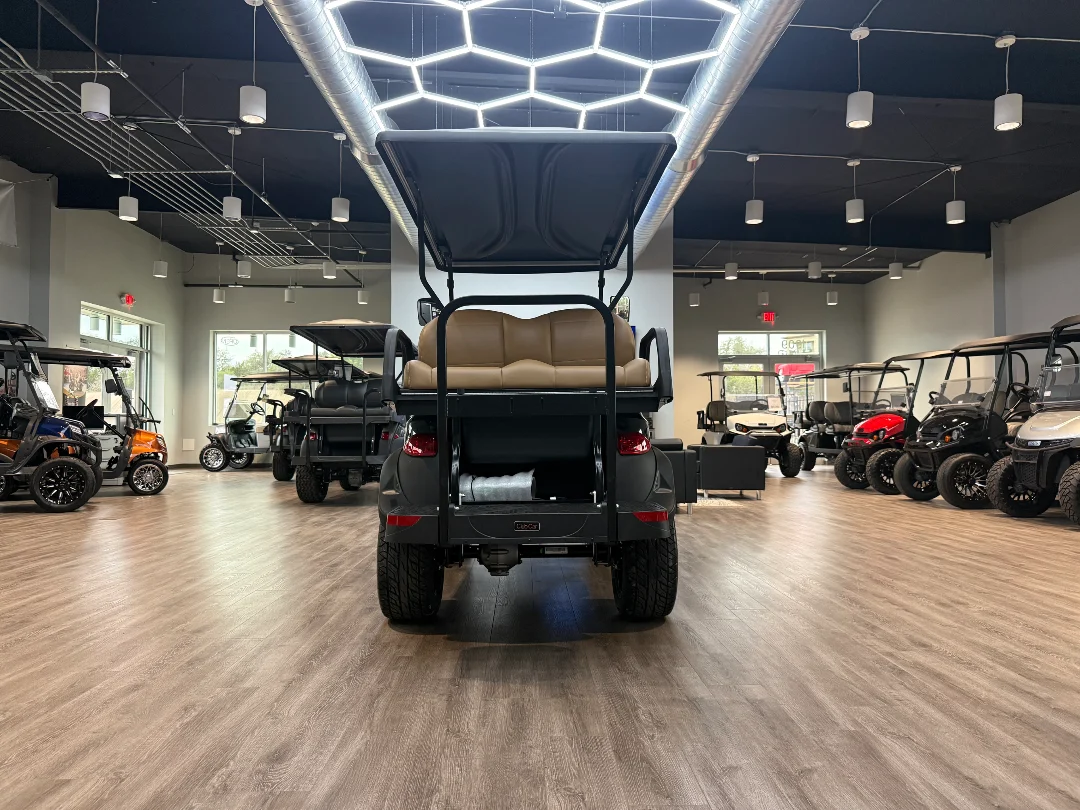 This 4-passenger golf cart features a robust 29 hp peak motor, an impressive 3.1 kWh Lithium-Ion battery, and highlights like LED lighting and a factory lift kit for enhanced performance.
