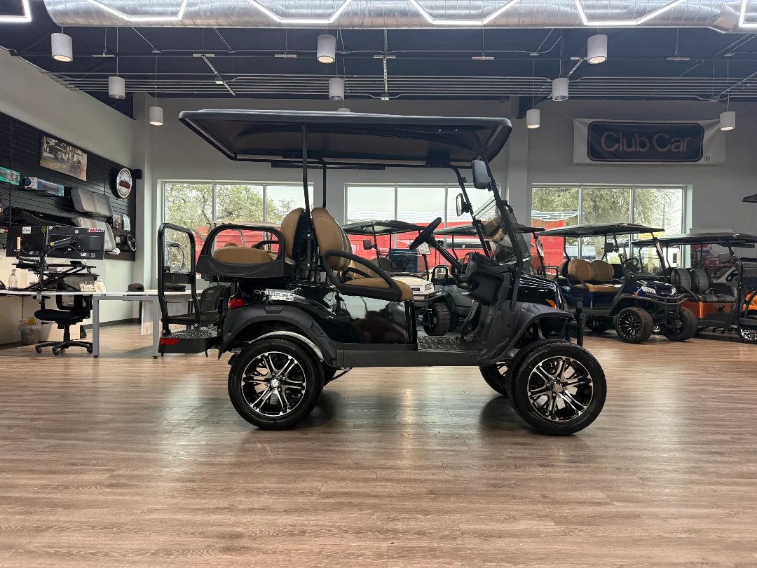 Enviro Carts is honored to present this 2026 Club Car Onward Lifted 4 Passenger Golf Cart for Sale. Powered by advanced HP Lithium-Ion technology with a robust 29 hp peak motor, this lifted cart delivers exceptional performance and efficiency. The sleek Black exterior paired with a rich Tan interior provides a sophisticated, bold look perfect for on and off-course adventures.