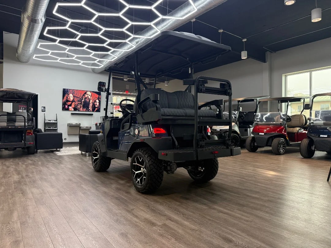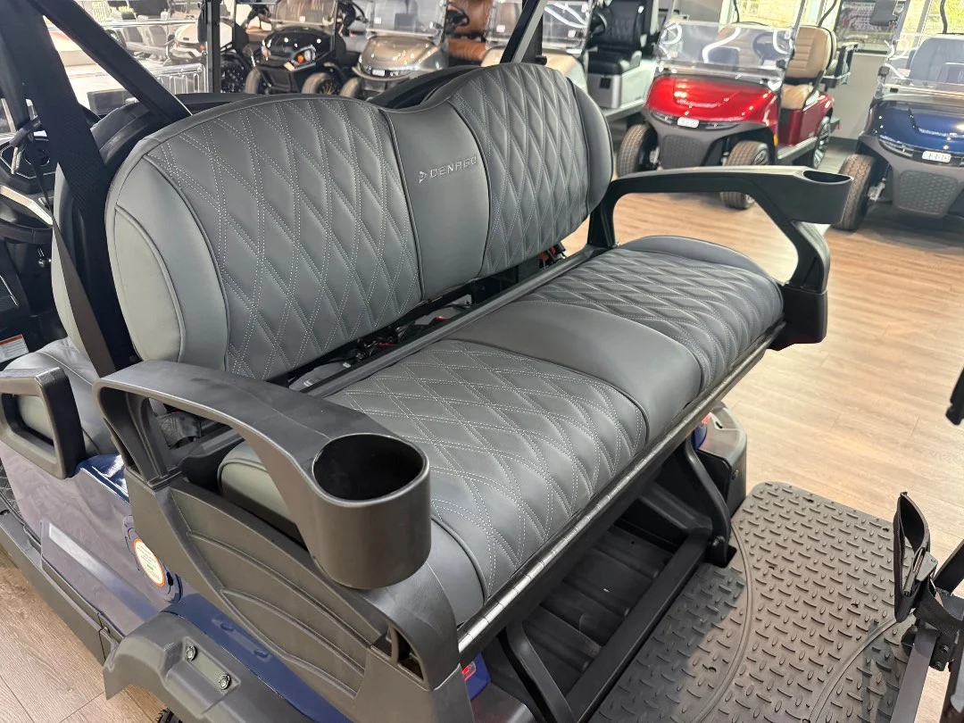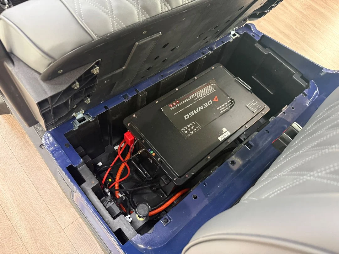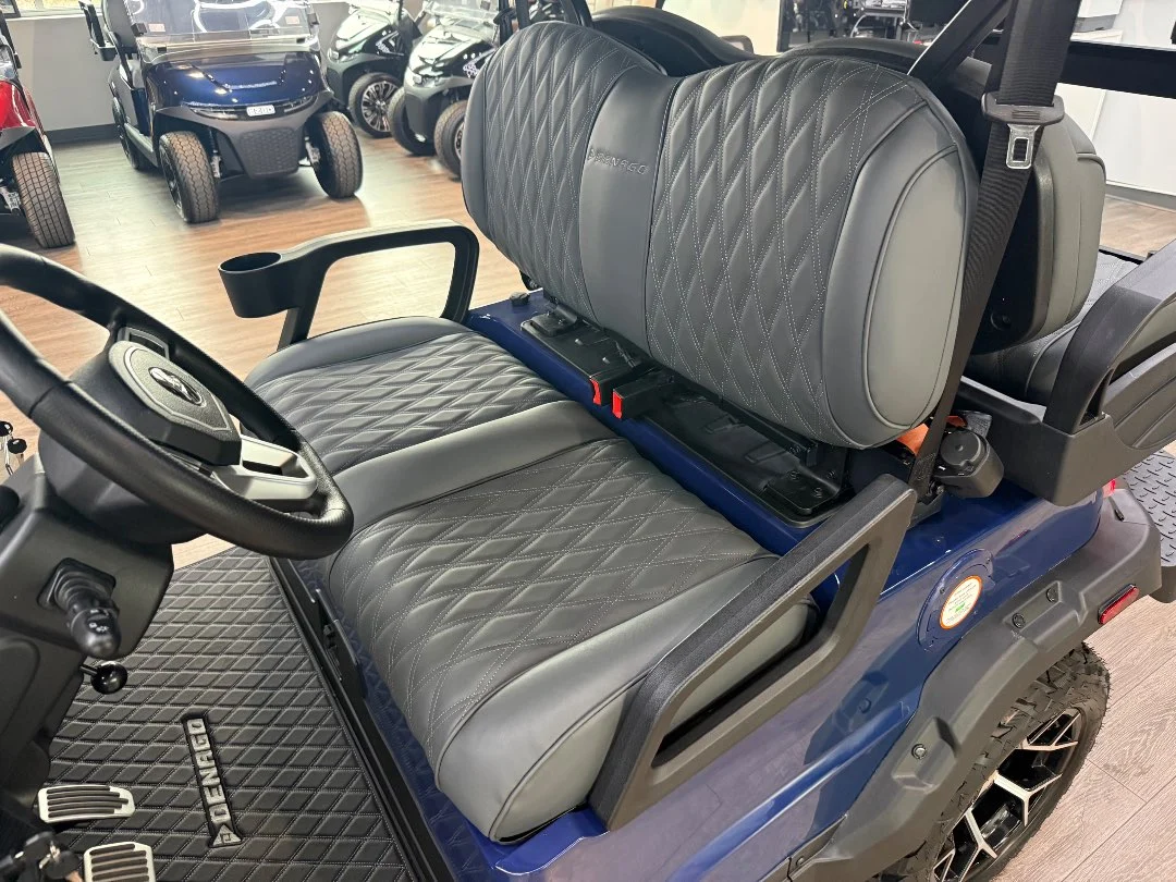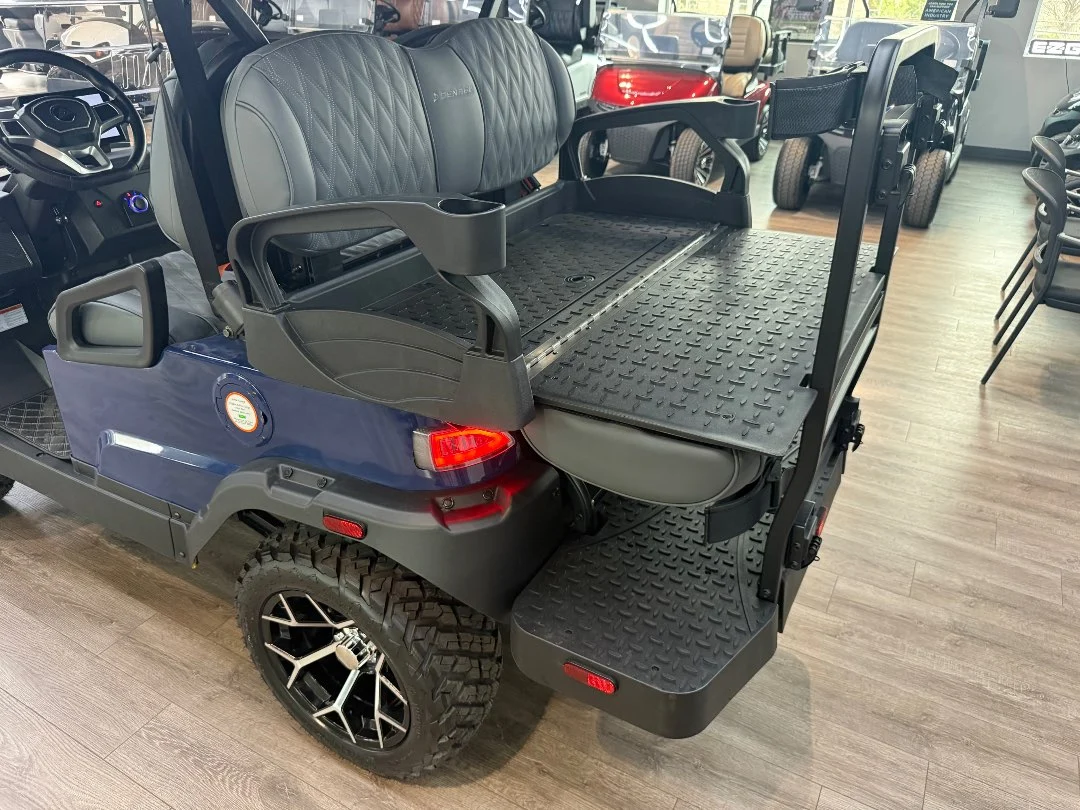 Enviro Carts is honored to present this 2026 Denago EV Nomad XL 4 Passenger Golf Cart for Sale. Powered by advanced HP Lithium-Ion technology with a powerful 5 kW AC motor, this cart delivers exceptional efficiency with a city range of up to 40 miles per charge. The vibrant Blue exterior paired with a stylish Stone interior provides a bold, modern look perfect for family cruising and everyday adventures.