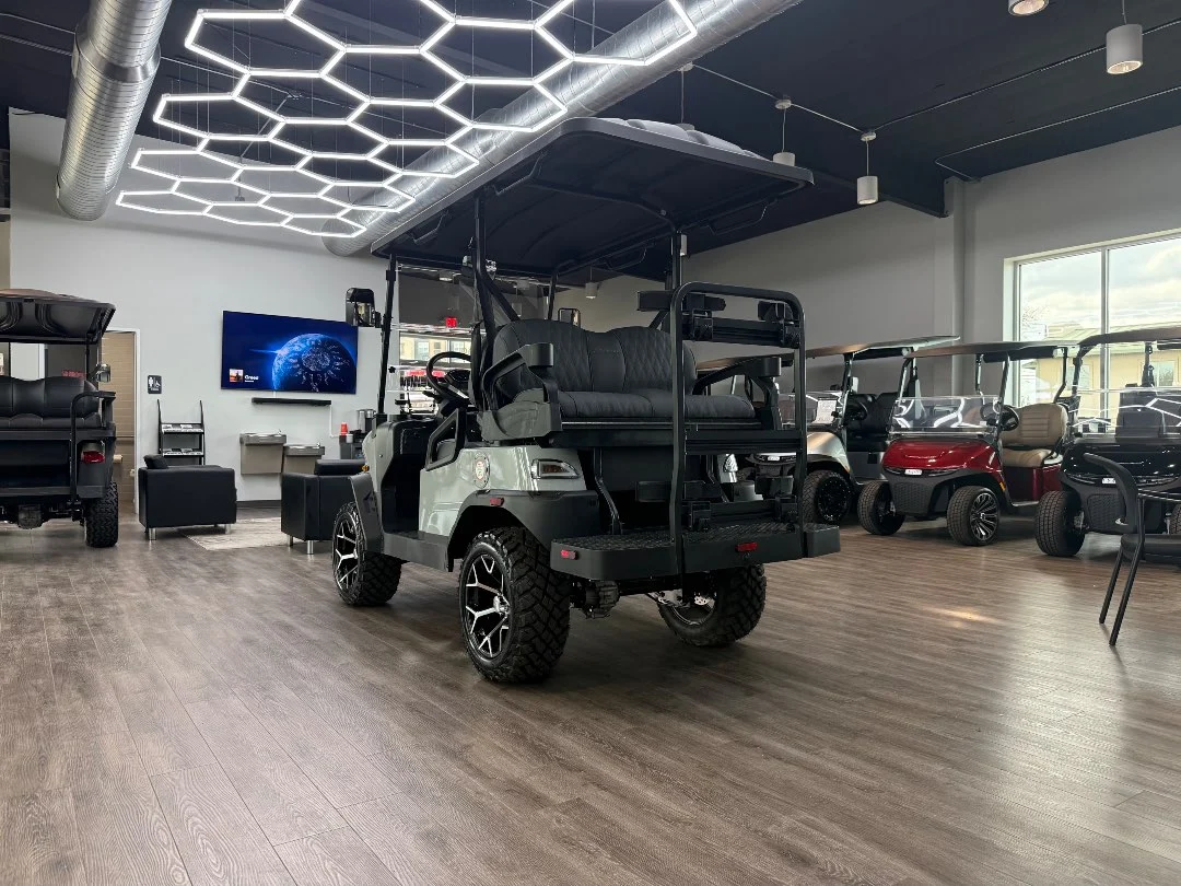 Enviro Carts is honored to present this 2026 Denago EV Nomad XL 4 Passenger Golf Cart for Sale. Powered by advanced HP Lithium-Ion technology with a powerful 5 kW AC motor and 400 Amp controller, this cart delivers exceptional efficiency with a city range of up to 40 miles per charge. The sleek Gray exterior paired with a stylish Stone interior provides a sophisticated, modern look perfect for family cruising and everyday adventures.