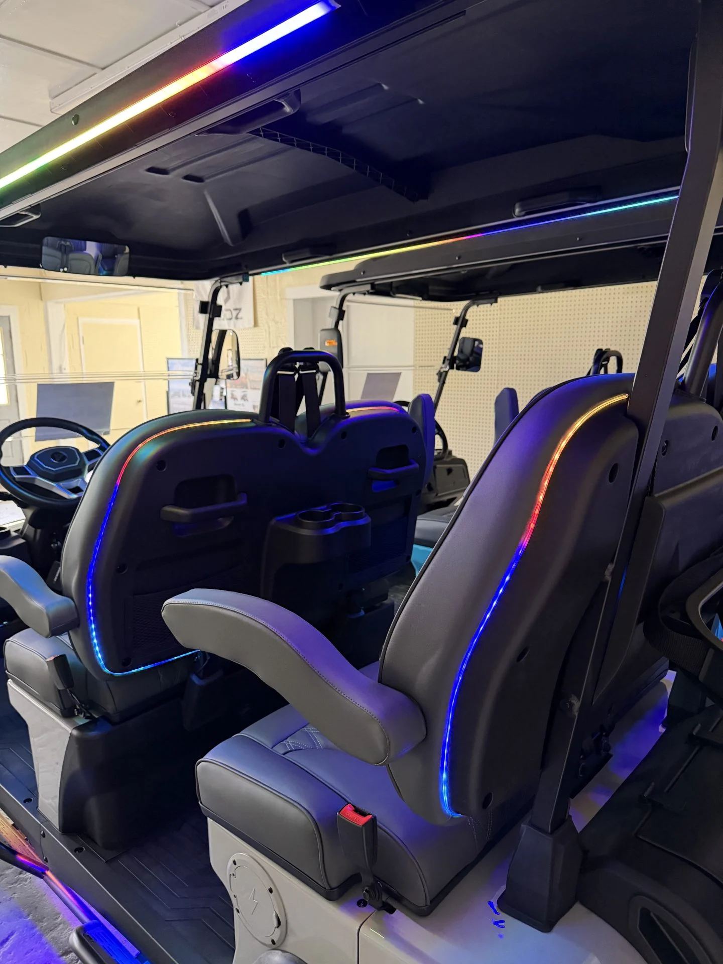 This golf cart combines cutting-edge technology with comfort, making it an exceptional choice for families and groups seeking eco-friendly transportation.
