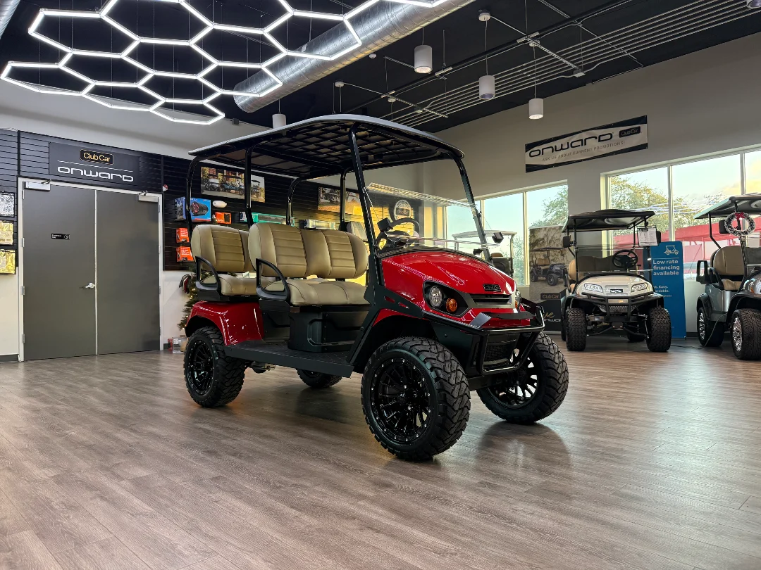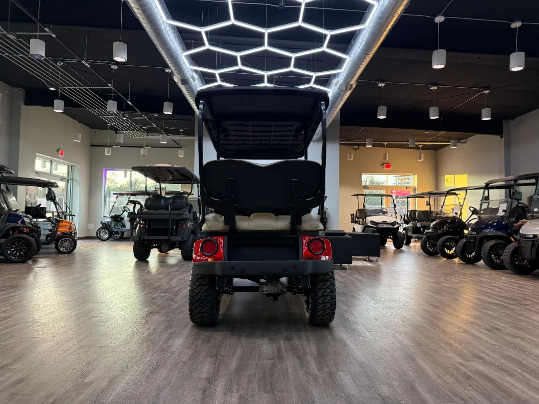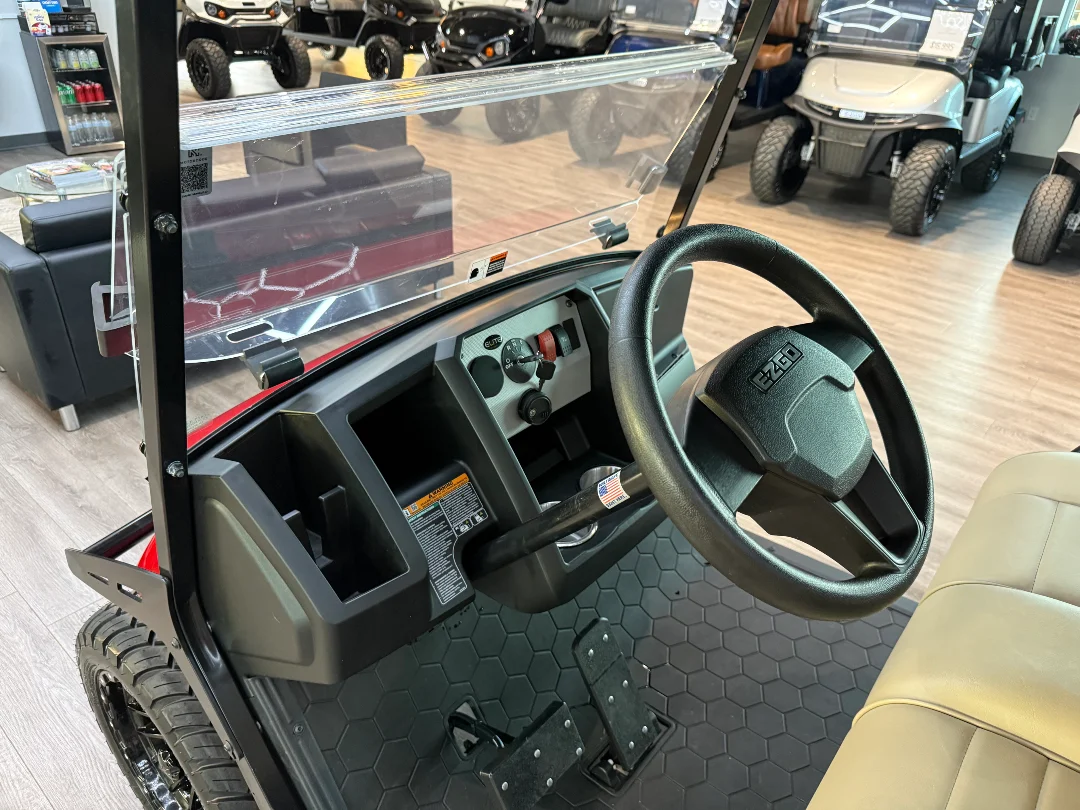 Enviro Carts is honored to present this 2026 E-Z-GO Liberty X Golf Cart for Sale. Powered by advanced HP Lithium-Ion technology, this cart delivers smooth performance, reliability, and efficiency for up to four passengers. The vibrant Red exterior paired with a warm Tan interior provides a bold, eye-catching look, while its durable chassis ensures long-lasting performance for family cruising and everyday use.